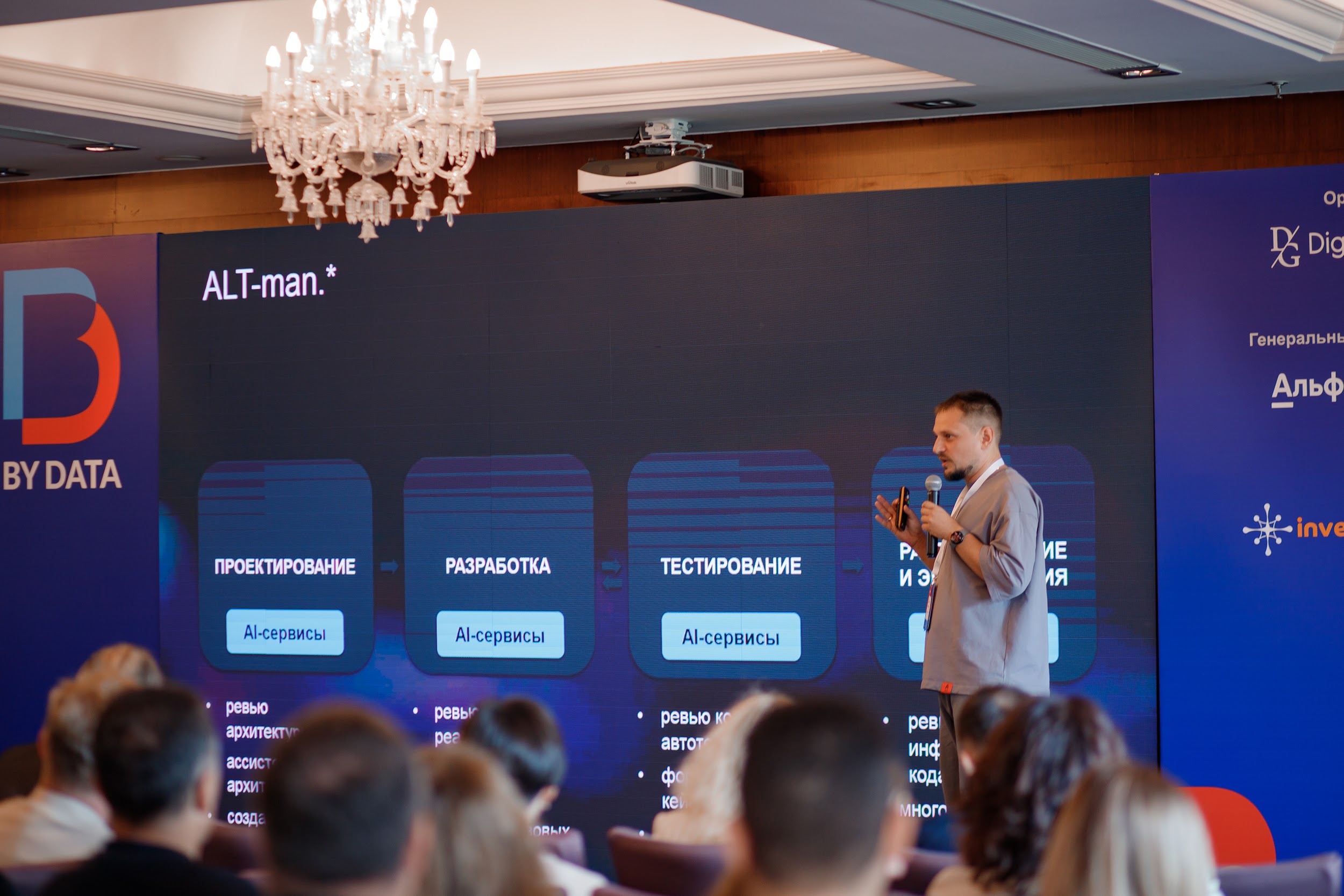 Вадим Мустяца, руководитель по развитию информационных технологий и Head of Engineering Альфа Банка (Беларусь), детально рассказал как и для чего были реализованы AI-сервисы ALT-man. Сервисы значительно увеличивают эффективность разработки и тестирования программного обеспечения. ALT-man.Reviewer сокращает время на ревью кода в 10 раз и позволяет разработчикам оперативно получать отчеты по коду и задачи на исправление в режиме 24/7. Другой важный компонент — ALT-man.TestWriter, автоматизирующий процесс создания тестовой документации и позволяющий QA-инженерам сократить время на формирование тестовых сценариев минимум вдвое. Спикер подчеркнул в своем выступлении: “Важно постоянно пробовать разные открытые модели и тестировать их. Если вы возьмете одну конкретную модель и будете долго с ней работать, за это время появится три более качественных. Скорость их развития при нынешнем уровне хайпа выше, чем скорость тонкой настройки конкретных версий под текущие задачи. Это наш опыт.”