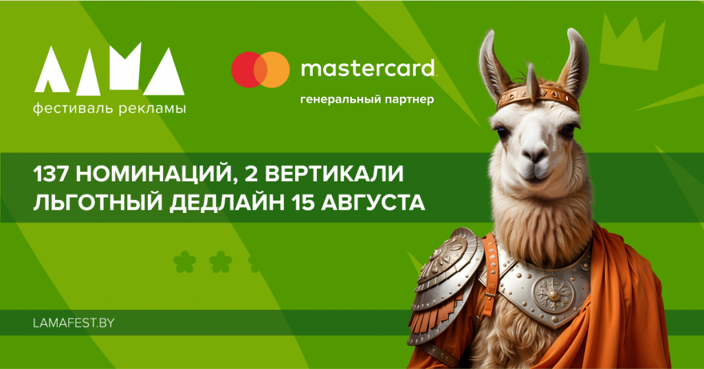 Фестиваль маркетинга и рекламы ЛАМА – событие, которое ежегодно ждут представители креативных индустрий, международные и локальные бренды Беларуси, завершает льготный этап приема конкурсных работ – подать проекты на специальных условиях можно онлайн и только до 15 августа!
